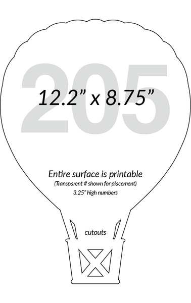 Here is our Hot Air Ballon shaped auction paddle. A favorite of ours with lots of cutout design detail and large 3.25" high numbers.
