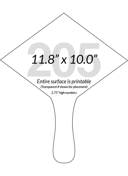 • 1 or 2-sided? While auctioneers LOVE it when there are numbers on BOTH sides of the paddle, let's be frank; the auctioneer isn't the one typically purchasing your paddles and printing to 2 sides does cost a bit more. There is something to be said about making the paddles "idiot-proof" for those patrons not paying much attention during the live auction or paddle raise, but just look at the numbers and see if adding numbers so the backside makes sense. They are always preferred, but there is a cost.