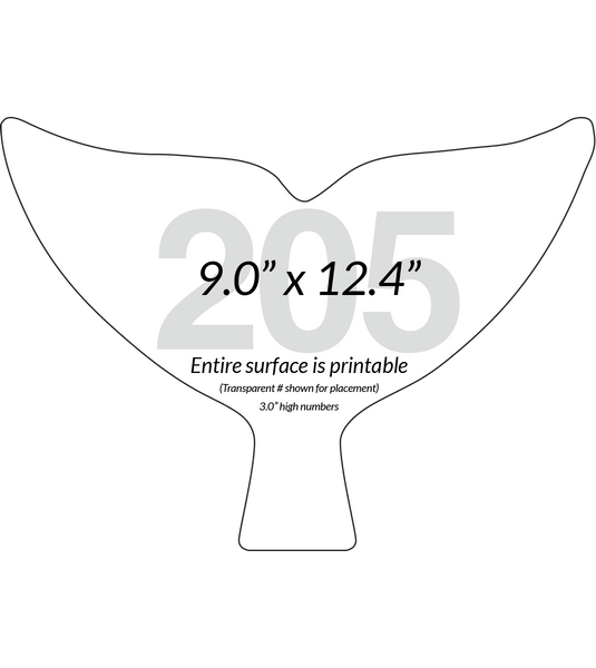 Our Whale Tail shaped paddle has a 3.0" high number with a large surface area for printing of other sea graphics, water scenery, and your organizations logos. Check out our other "Ocean" -related paddle shapes too. Check out our other "Ocean" -related paddle shapes too.