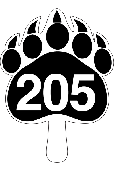 Our Bear Paw Pad shaped auction paddle can be ordered in several configurations. The numbers with the paw print together on the same side is the same price as just a single-sided print (eg. BasicPRO = $2.00). You also can choose your paw pad color to be anything you like. Or print numbers opposite the paw pad (so 2-sided) for just $0.50 more.