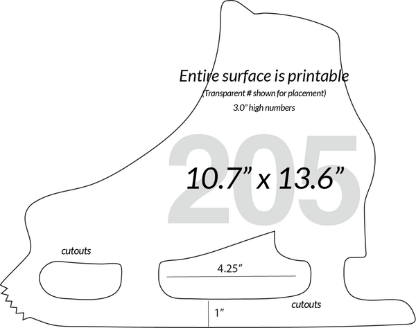 Great realism makes our Ice Skate shaped paddle really stand out. Our 1-piece plastic Ice Skate looks exactly as shown. NO additional handle. The skate blade acts as the natural handle here. We like to do that when we think the shape calls for it. Plenty of room to grab onto the paddle and bid HIGH! Measuring 10.7" high x 13.6" wide, there are also cutouts you can see that expose the 'blade'. 3.0" high numbers on this one with lots of room above the number for graphics.