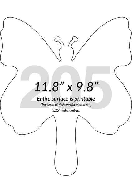 Butterfly-shaped auction paddles are one of our most popular shapes. Many non profit event and organization themes revolve around butterflies. The 'Butterfly 1' shape is one of our full size butterfly shaped paddles. The primary feature of this shape is a shorter height body, which gives the wings more emphasis. If you want a butterfly that will also accommodate a graphic, take a look at Butterfly 2 shape.