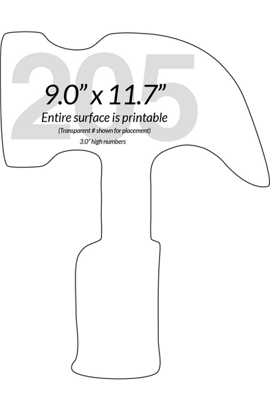 Another in our Home and Building collection is our Claw Hammer shaped paddle. We think it really hits home! Some like to mix and match the Hammer shape with our Hard Hat shape for their paddle set, and YES we can do that! 3.0" high numbers are standard on this one.