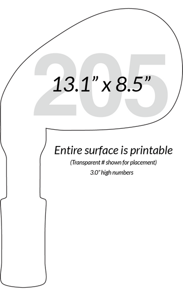 Here is our one-piece Golf Club auction paddle shape. Measures 13.1" high x 8.5" wide and can handle a 3.0" high number. We also have a Golf Tee Flag shape in this category as well to keep with the golf theme. While you are there, check out our table stanchions with table numbers that are also in the golf flag shape.