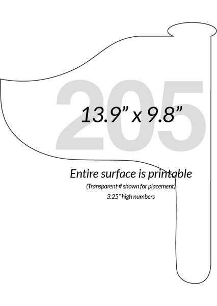 Our Golf Flag shape looks nice with a graphic above the numbers. Measuring 13.9" high x 9.8" wide, the Golf Flag takes a large 3.25" high number as well. We also have several other "golf-centric" paddles in this theme as well. We often see folks filling the background with bright colors with reversed white numbering. All up to you though, whatever you like. Not ready to purchase until you see a mockup? No problem. Just email us and we'll be happy to create your proof. Don't forget to send any graphics you'd like on there as well: https://betterbidders.com/pages/contact-us