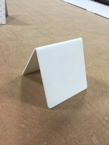 Made from 3mm white Sintra PVC, this heat-bent 4" x 4" (per side) table tent will last a long time. Wrapped with any digitally printed graphics you need. Use for your table numbers, promotional specials and more.