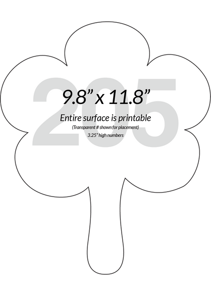 Here we have our (generic) Flower shaped paddle. We'll be adding more flower shapes in the future. If you have a particular one you'd like to see just ask and we'll design it. Full color customization available always. 3.25" high numbers and plenty of room for your graphics.