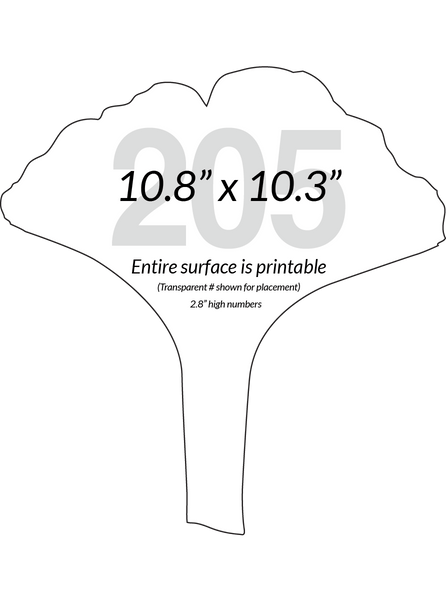 Often used as a wedding fan, the Ginko Leaf is and has been a symbol of longevity, with Ginko trees living as long as a thousand years! The handle here is integrated as part of the leaf itself. Everything still one piece. Available with a photo-realistic image of the green leaf as well for the number side or the back side. Just ask about it!