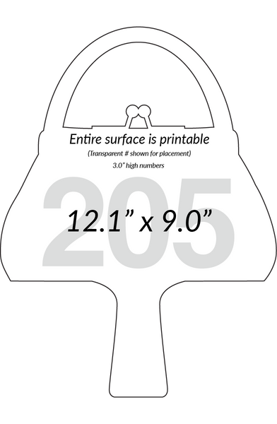 We went old school with this vintage ladies Purse paddle shape. Great for luncheon events, purse auctions as well as other fashion events. Fancy up your purse with choice of number color (and number outline color) for ANY of our paddles at no additional cost to you.